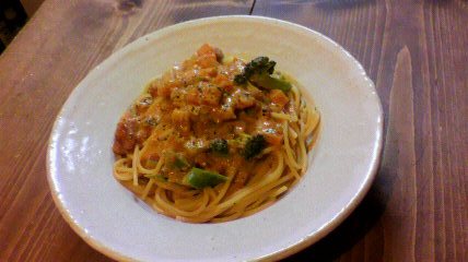 『ベーコンとブロッコリーのトマトクリームパスタ』