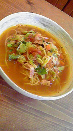 春野菜のスープパスタにしてみました。
