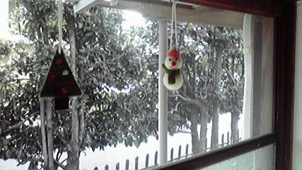 窓辺に雪だるまとクリスマスツリーが・・・・